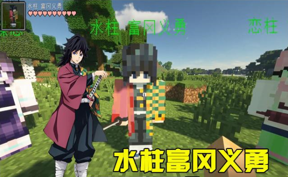 水柱(富冈义勇),在《鬼灭之刃》中一直力挺炭治郎和祢豆子,简直就有点高冷的邻家大哥哥,(其实高冷是装出来的,脑子不太好使才是真的)。在《我的世界》中看上去跟动漫中没什么区别。