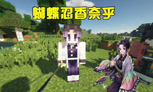 蝴蝶忍(栗花落香奈乎),一个总是笑嘻嘻的角色,在《鬼灭之刃》中扮演着大姐姐的角色照顾着炭治郎和他的妹妹祢豆子,在《我的世界》中完全就被萌化了,萌萌的大眼睛直接秒杀一众《我的世界》玩家。