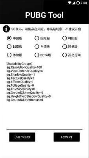 2、进入PUBGTool主界面,选择相对于的PUBG版本(PUBG国际服体验服所对于的是BETA版);