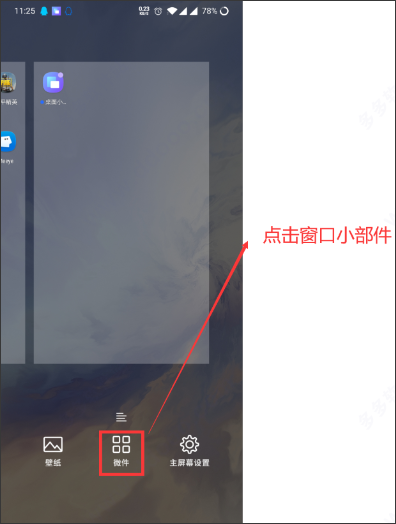 1、长按桌面,进入桌面编辑模式,找到窗口小部件;