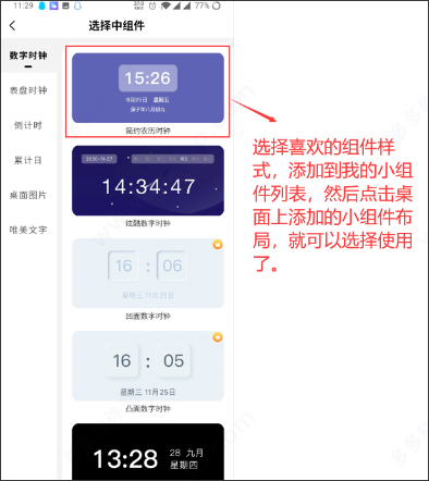 6、可以随心DIY专属数字时钟,选择合适小组件,定制你的专属个性化桌面。