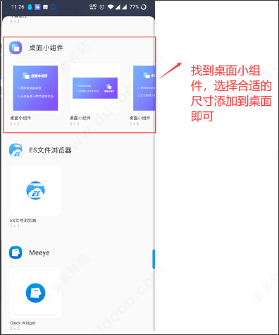 2、找到桌面小组件,选择尺寸后即可添加到桌面;