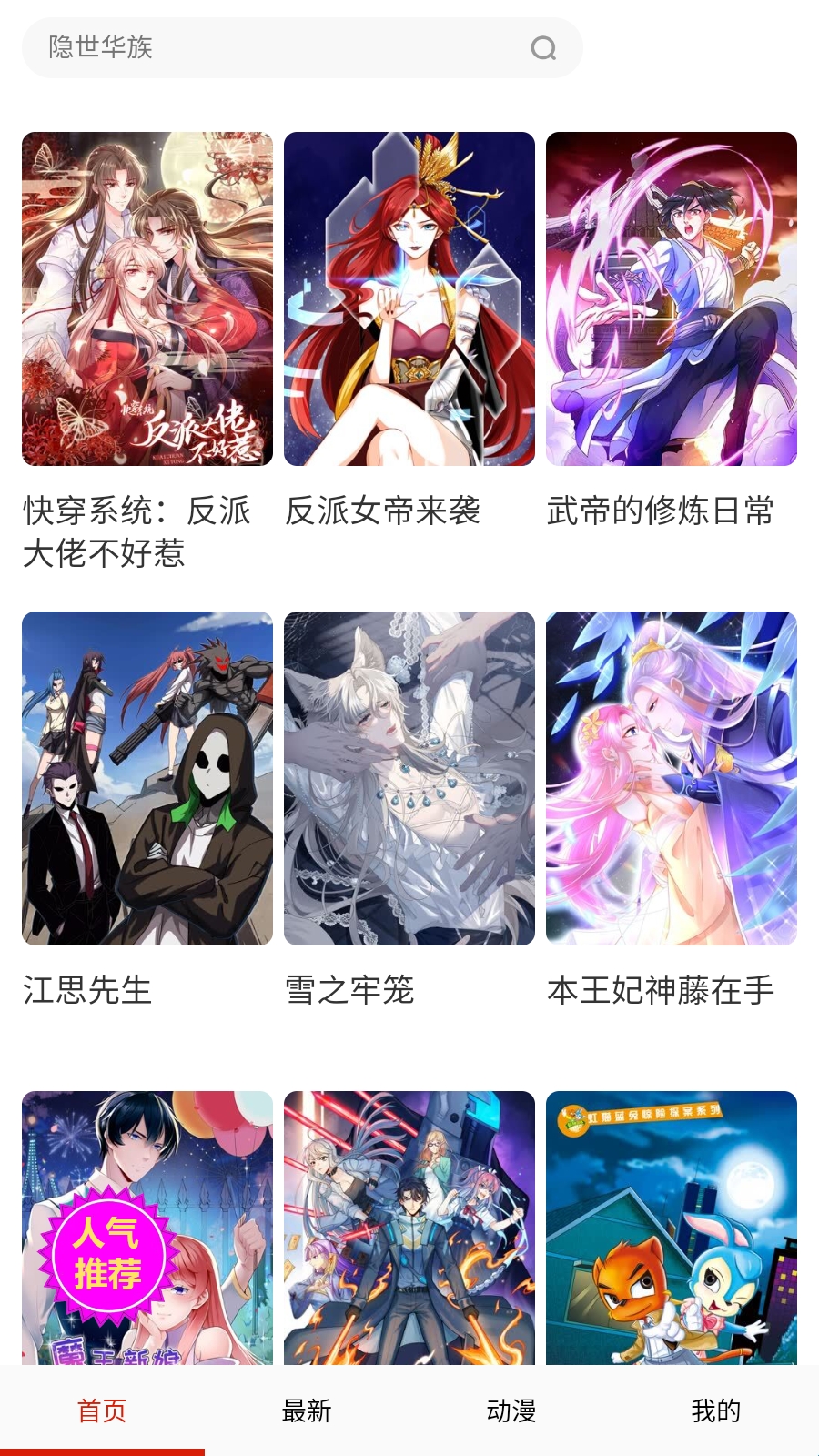 探索漫画:用户在主界面能看到各类热门漫画推荐,可根据自身兴趣挑选不同类型的漫画来阅读。