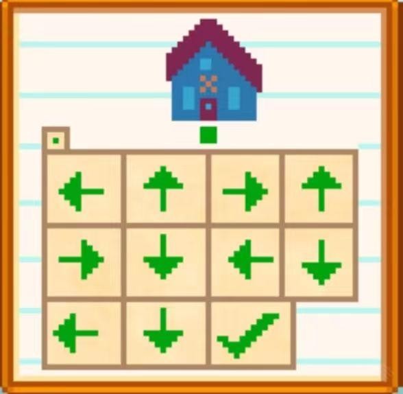 秘密纸条#19(地点在1柳巷,乔迪,山姆的家门口,从图中门口绿色方块处开始走,按照第一个箭头的方向一直走到碰到障碍物,无法继续后,往第二个箭头方向走,以此往复,最终会在镇长刘易斯家后面找到刘易斯黄金雕像。)