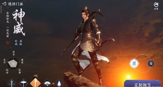 神威本是源自军旅的门派,故而无论是性格还是武功都带着军旅出身的特点,注重实战、刚猛石道、勇往直前。