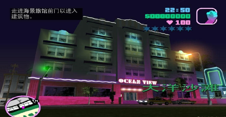 左下角的是雷达,跟随雷达上的粉色标志找到旅馆