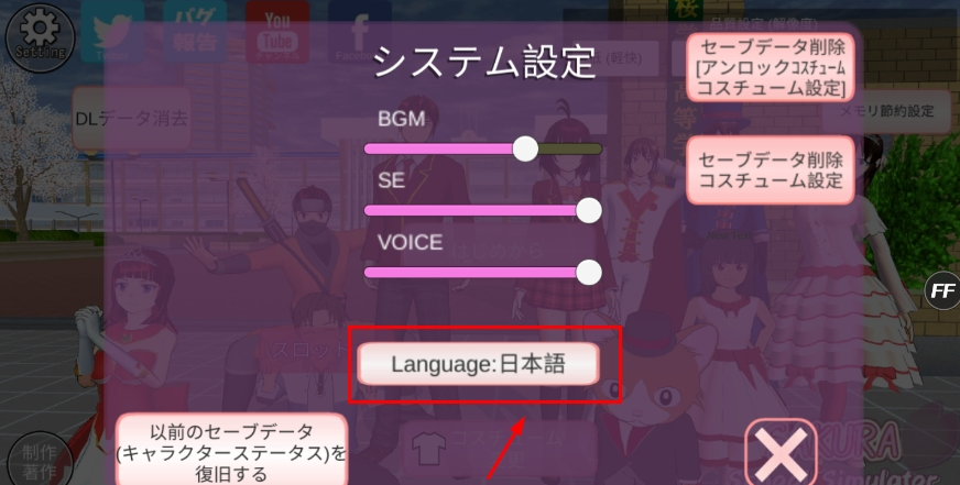 樱花校园模拟器日语版怎么修改日语?
