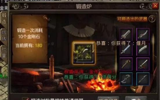 介绍玩家可以通过消耗金刚石进行武器锻造,锻造出的武器品质为随机性,有概率锻造出稀有武器