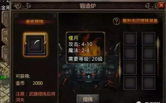 可以将指定的武器重新熔炼置换成金币或金刚石,用于消耗过量的武器