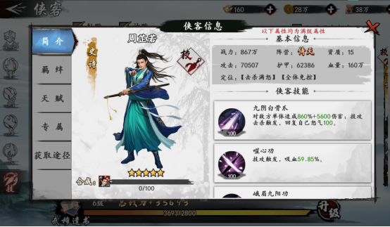 掌属性职业的侠客,作为为数不多的前排输出,一般攻防兼备,既有不错的防守能力,也能对敌人造成不俗的伤害,还能够回复自身血量提升自己的站场能力,同时还拥有不错的辅助技能,在对战中是必不可少的职业之一。