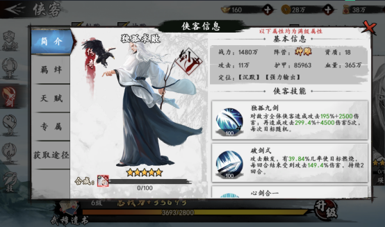 剑职业是一个变化莫测的职业,大多数剑职业侠客都是作为后排输出来使用,偶尔也可以充当前排,剑职业侠客拥有强力单体输出能力,并且兼具连击反伤无敌沉默等控制类型技能,是一个非常强力的对敌打击职业。