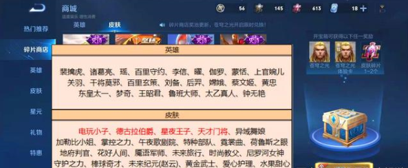 更新后的碎片商城会在次上架(鲁班)电玩小子,(刘禅)天才门将、(白起)星夜王子等史诗级以上皮肤。听说孙尚香的水果甜心皮肤会对这款皮肤重做,也会有不一样的改变,如果小伙伴你的皮碎片比较充裕的话,不妨可以兑换一个水果甜心皮肤,因为这款皮肤也会在本次更新中上架碎片商店哦!