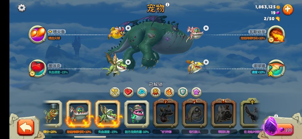 多种不同类别的创造性皮肤也将成为玩家探索游戏最重要的护甲,这些皮肤涵盖了生命、加速、冲刺、龙焰等一系列超能属性,使得玩家在不同区域探索时,每次独立冒险完美的保驾护航。而且,开发团队所设计的47种宠物也拥有着更强劲的属性,比如地雷减伤、吞食垃圾、击晕、远距离吞食等近百种的能力。玩家每次出门可以携带1-4种不同的生物,配上不同风格皮肤进行组合,让您的巨龙探索的更远!