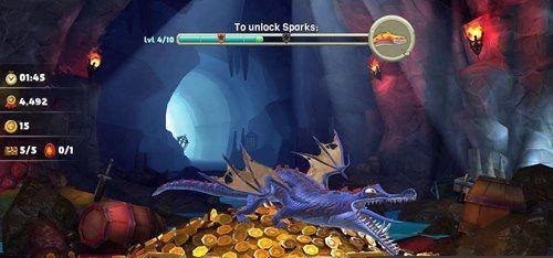 4、在龙窟内对飞龙进行升级后来到这个魔幻的世界中,S级的龙连捕食小鸟难度都比较大,但在经过升级速度、加速之后,就能快速捕食,延长游戏时间。
