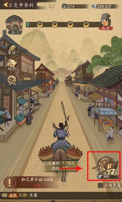 在获得门客之后,就可以进行关卡贸易,开启更多的副本。