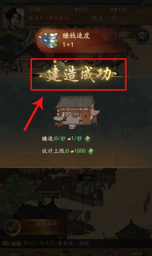 在点击商铺钱庄进行收钱,可以后为续扩建,招募伙计使用。