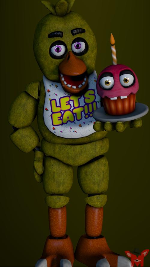 一只拿着蛋糕的母(公)鸡(鸭)。从1A出发,到达右门。机制跟邦尼差不多,把上一篇的兔兔换成鸡 ♂ 鸡(雾),左右互换一下即可。