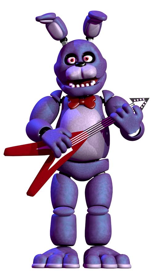 一只非常可爱的紫色兔兔。从1A开始出发来拥抱你。兔子和鸡的路线不重要,因为在来的途中他们既无法杀你,你也无法反制。最后会来到左门,等你一翻监控就进入室内。防御方法是在门前时关上左门,等一会就会离开。(第一夜因为AI低,所以移动慢,会在门前赖着不走,多等一会就好了)兔兔在门外时,不关左门看向右门或看监控时,兔兔就会进入室内并寻找机会抱你一下。一种特殊情况,你没看见监控,兔兔在不在门外,你看监控时兔兔瞬移到门外并进入室内而你只看了一小会监控(0.5到1.5S)就放下,它会等到下一次你打开然后关闭监控时给你一个爱的拥抱。此时左门会被锁住,不能开灯也不能锁门。应对方法后面说。