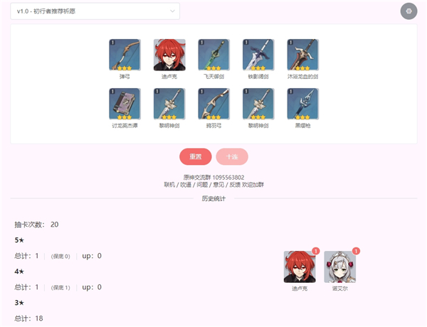 其中原神的这个在线祈愿抽卡模拟器可以统计你获得的全部角色以及次数,并且分类到五星、四星、三星等统计中,看看你是否是真正的非酋。