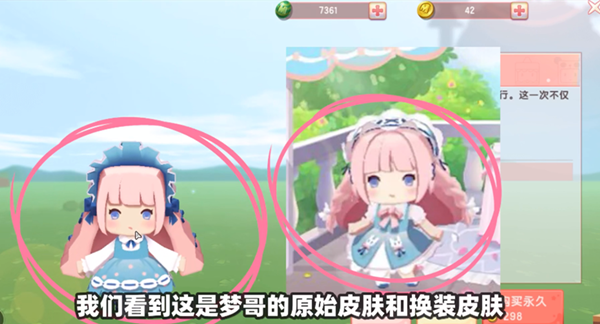1、萌哥的换装皮肤乍一看和原版皮肤很像,只是小裙子的短裙不一样。