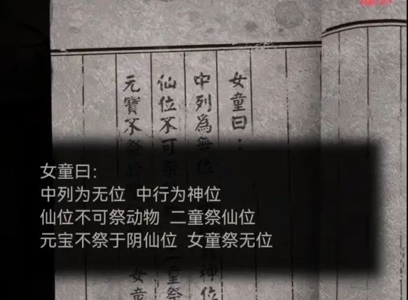 综合上面男童女童的信息,仙位是元宝、小人、桃子;鬼位是猪牛羊,可知神位是女童、男童、鸡