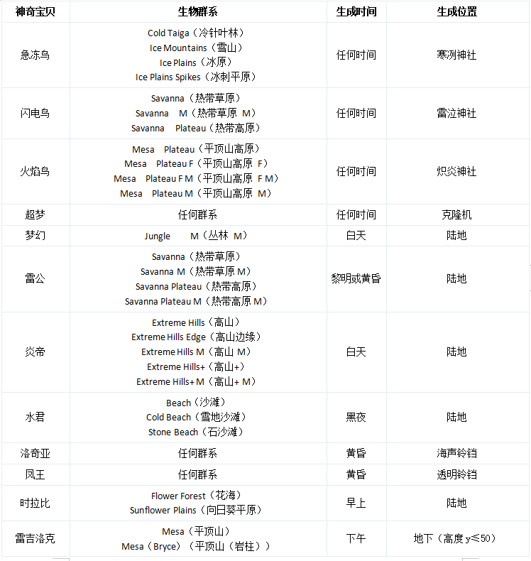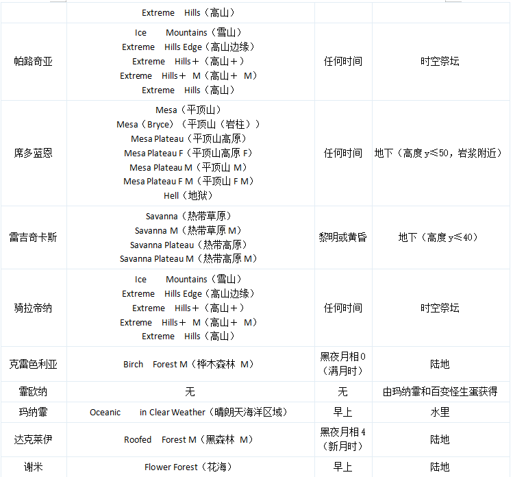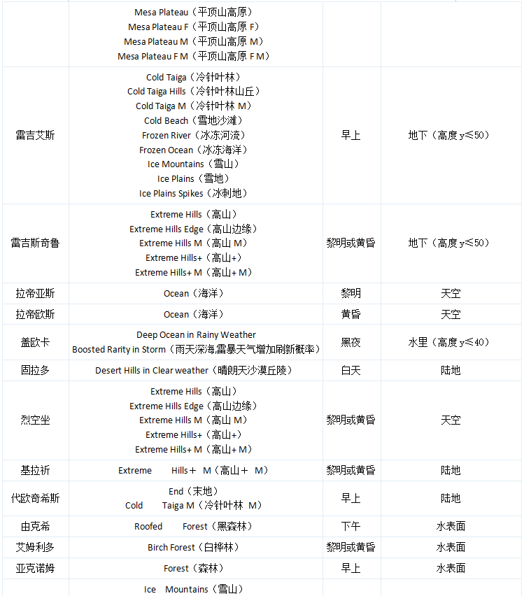 我的世界神奇宝贝重铸8.2.0神兽刷新地点: