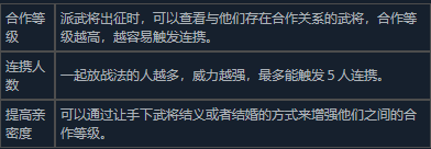 当多名武将触发“战法连携”,即同时使用战法时,战法的威力会成倍提高,甚至有机会一口气消灭数千乃至数万人。其机制为:让武将与自己的结义兄弟/姐妹、配偶、亲密武将、亲属好友等等一起出征,如果双方的距离不超过2个格子,那么当其中一方放出战法时,就有一定几率会触发战法连携。