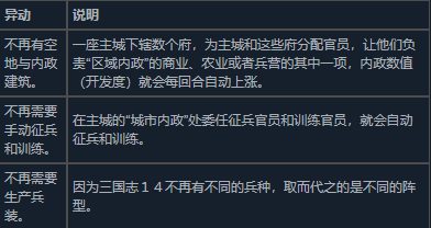 甲之蜜糖,乙之砒霜。往坏了说,简化的内政会让种田流玩家少了很多操作的空间,游戏从中期开始可能会进入“除了战斗之外无事可干”的内政真空期;往好了说,君主可以避免进行大量的重复操作,不用延误推进的速度。