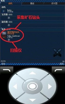 瞄准矿石:当扫描仪的瞄准准心对准太空中漂浮的矿石后,瞄准准心外圈会慢慢变成黄色,之后点击确定键,飞船飞向选中的矿石并且停留在矿石之上。