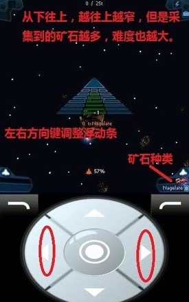 采集矿石:当飞船成功停留在矿石之上时,会出现一个三角形。上面的绿条显示的是采集范围。从下往上,越往上越窄,但是采集到的矿石越多,难度也越大。