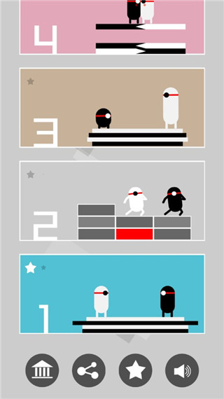 4、第二关不能让砖块砸中,点击屏幕即可移动角色,每次移动都是有黑右移 黑白左移 白右移的规律,非常考验手速