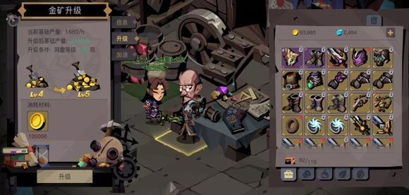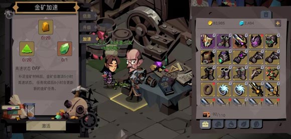 7、如果囊中羞涩没钱升级,却又缺金币急用,金矿加速了解一下!提交一定量的材料(符文工坊是装备)就可以激活金矿的高速状态啦。低级材料没地方花,先怼进金矿再说!