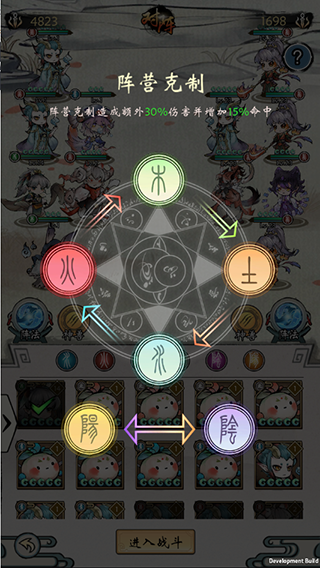 同属性的圣灵划分为同阵营,以此触发阵法加持效果,而不同阵营的圣灵又会产生阵营克制,造成额外的命中与伤害。