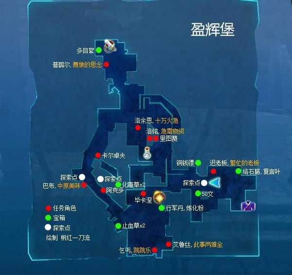 让洛昭言带队,和盈辉堡北部广场的商人高羽说话,他买了一堆古玩不知真假,希望主角帮忙鉴定一下。前往景安城的一间民居找到这个叫沈玉的人,他会鉴定出那堆古玩全部是膺品。回去将结果告诉高羽,他说又要被娘子骂了,不过还是要感谢主角的帮忙。获得赤兔筋、500文、青龙玉佩,提升盈辉堡、归九堂的声望。