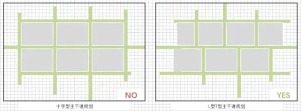 主干道划分到最小的单元,应该是许多T型和L型的道路,永远避免十字型道路岔口!(原因会在下一小节详述)
