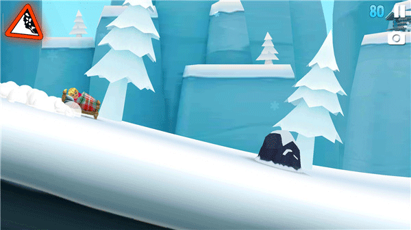 4、接着进入游戏便可开始,需要在雪崩来临之前快速前进,屏幕左侧上方的雪崩警示牌会在雪堆即将接近时不断地闪烁以示警告,