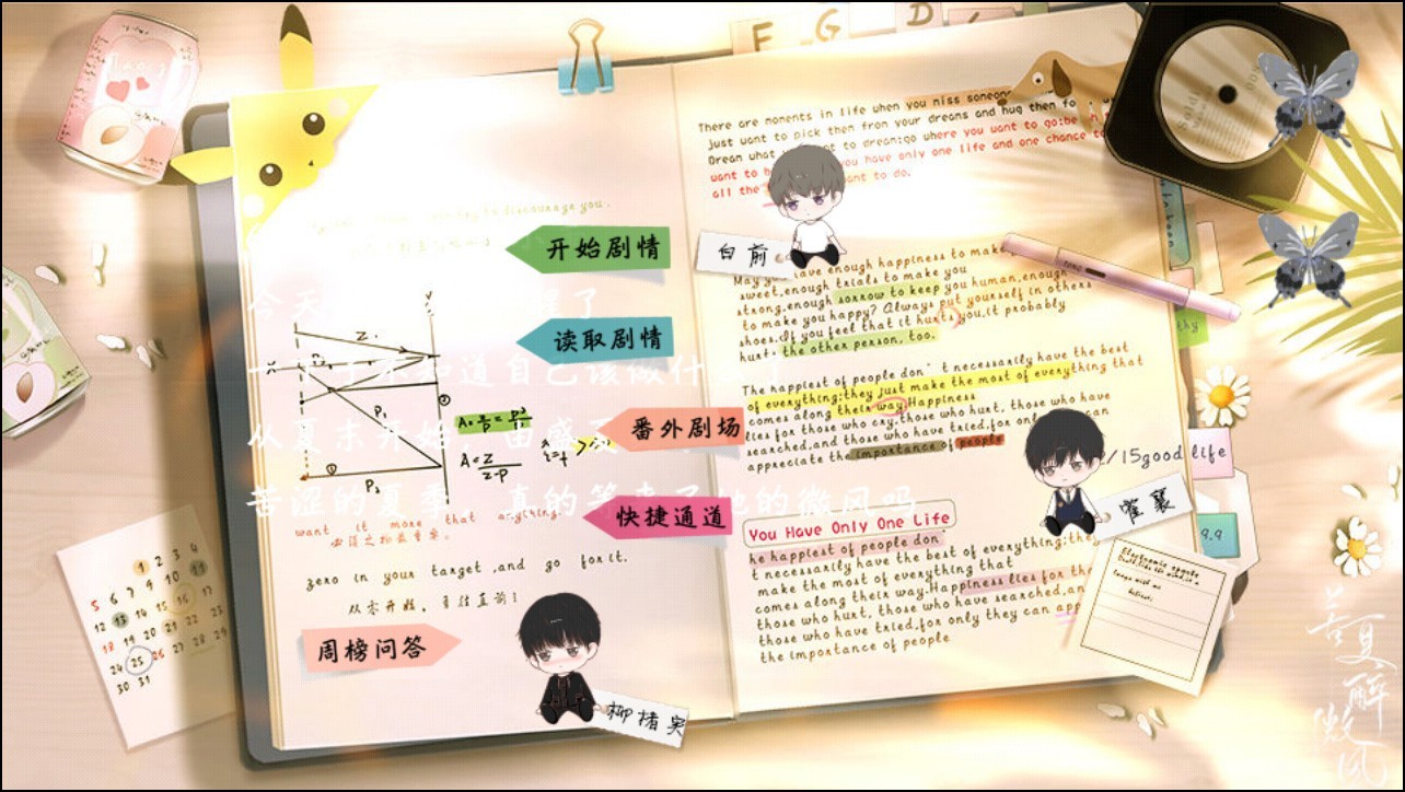 苦夏醉微风金手指清软是一款制作十分精良的视觉小说文字剧情游戏,这款游戏采用了与众不同的手绘游戏画风,带给玩家出色的视觉效果体验,而且这款游戏中玩家可以和性格各异的男性角色进行接触,体验甜蜜的校园爱恋之旅,玩法十分自由,内容也十分丰富,对此感兴趣的玩家一定不要错过。