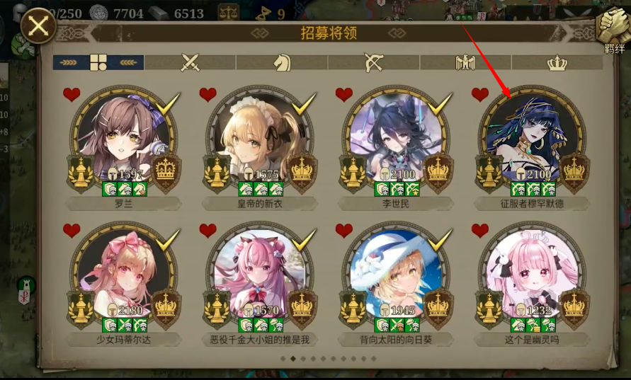2.接着选择想要招募的角色,每个角色都有不同的战斗力