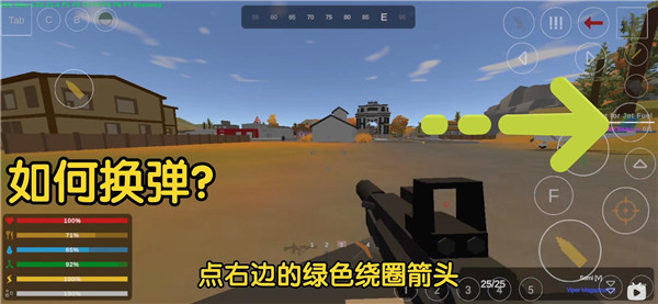1、点击右侧边的绿色绕圈箭头或是上方的枪械图标