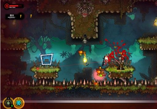 关卡中的大部分机关还是很容易过的,例如下图这种,先跳一下,然后按右键空中冲刺飞过去即可。