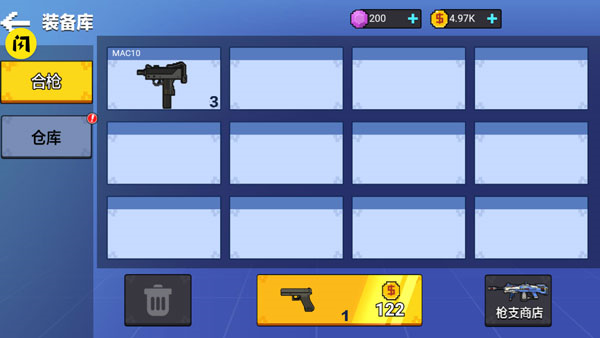 2、在装备库可以进行合枪,可以获得更强劲的武器;