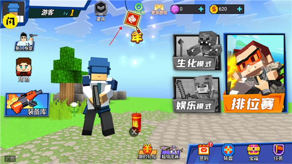 1、进入游戏后,我们可以看到花里胡哨的福字,大家可以点击看看;