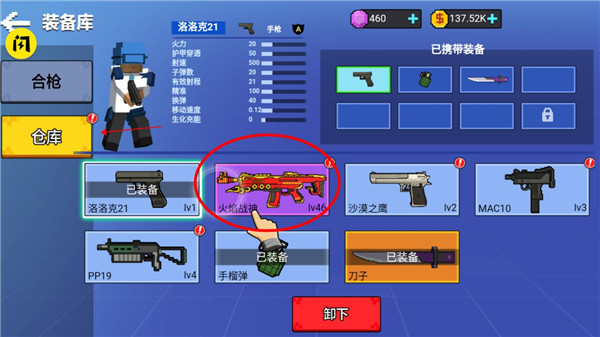 4、我们进入仓库,也可以看到,可以通过合成低级的枪械获得更加高级的枪;