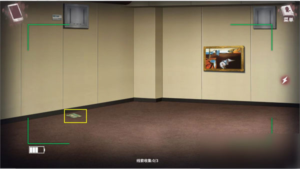 3、搜证:电箱,墙壁,灯,时钟,出口。