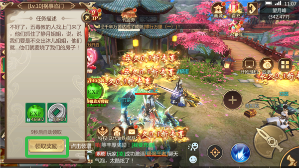 2、主线任务完成后,即可领取大量经验、金币及基础装备等奖励。