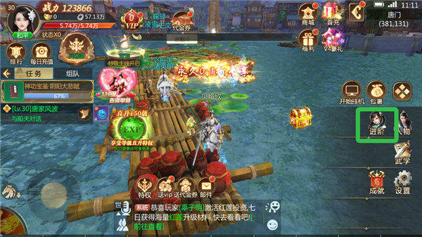 5、当角色战力达到要求后,及时点击“进阶”按钮,解锁更强属性与新技能。