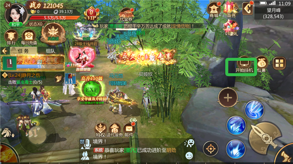 4、开启挂机功能(点击电脑标识),自动打怪升级,解放双手高效成长。
