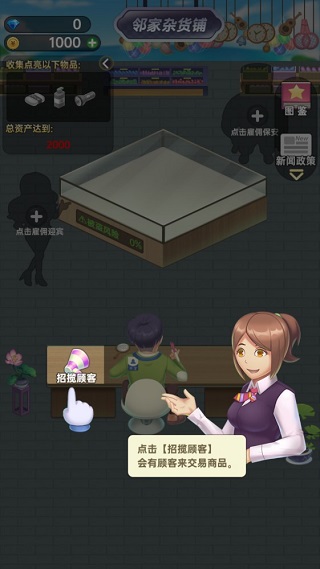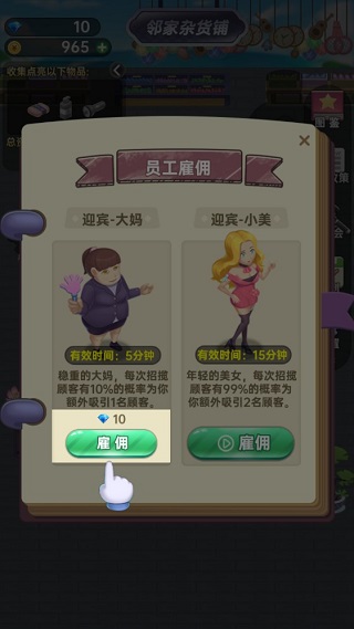7. 想快速积累财富?顾客数量是关键!当店内客流稀少时,可点击“雇佣迎宾”功能,主动招揽更多潜在买家。
