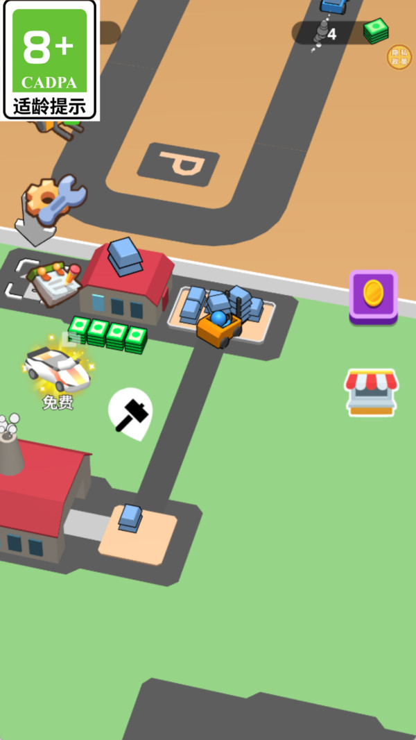1、驾驶叉车将原材料运送至组装台,完成初期生产任务,积累资源后逐步解锁更高级的工厂模块,持续扩大生产规模;