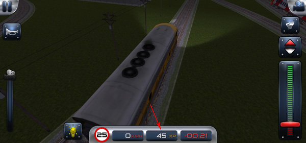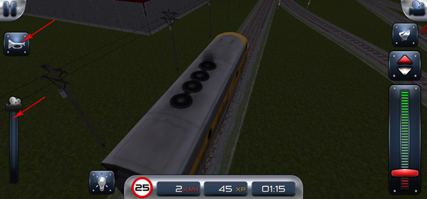 7、右侧从上至下分别为:视角切换、铃铛、前进/后退档位、以及控制列车行驶的核心档把;